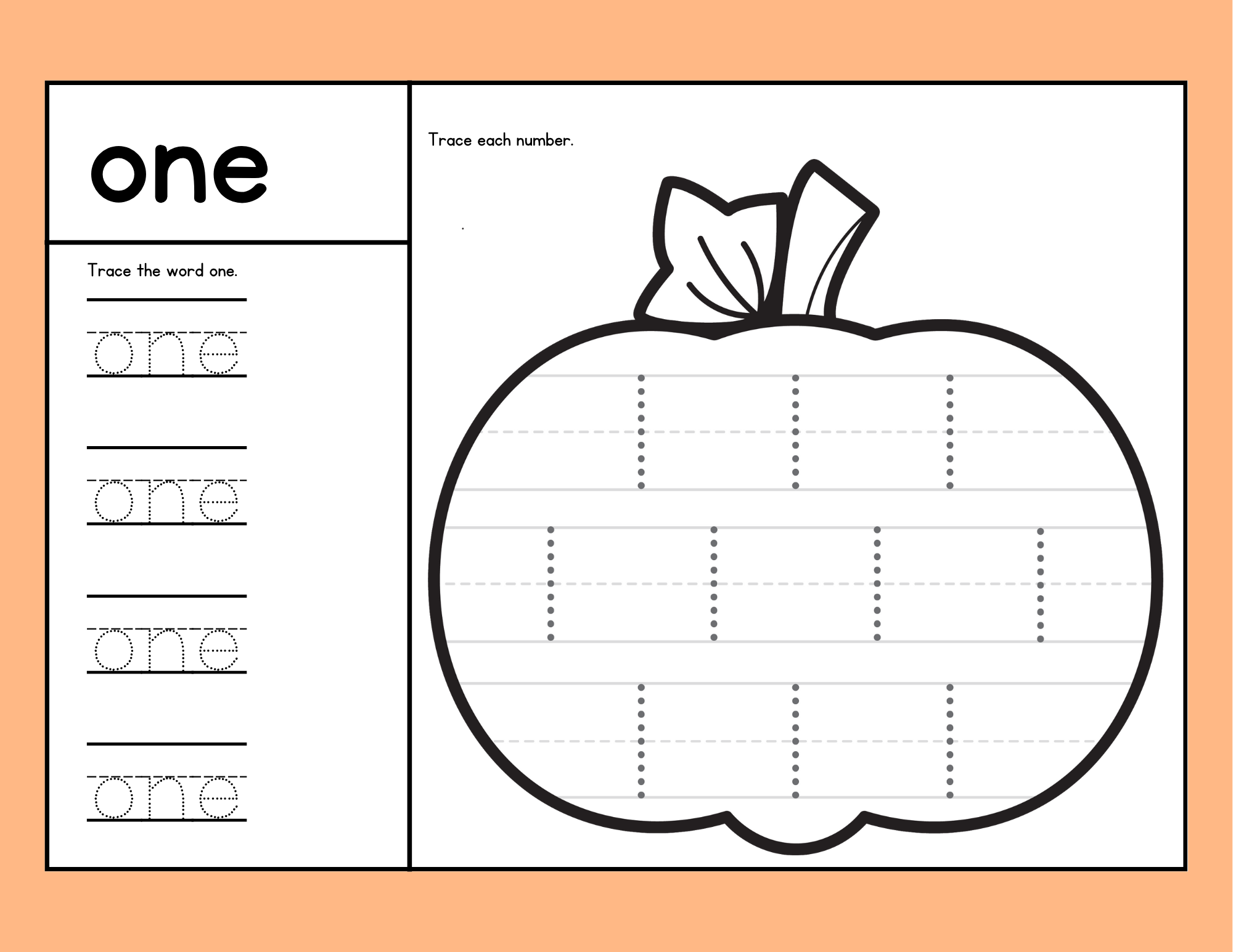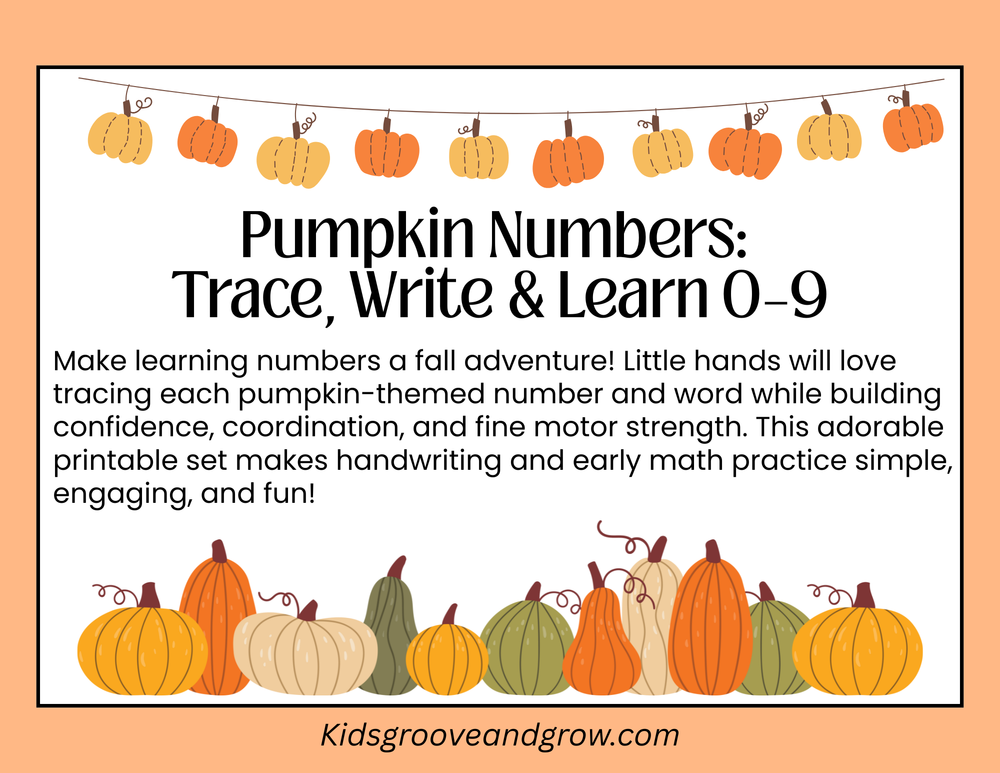 Make number learning fun this fall with these Pumpkin Number Tracing Worksheets! Perfect for preschool and kindergarten learners, this engaging fall math printable helps children practice tracing both numbers and number words from 0–9 in a cheerful autumn theme. Each page includes playful pumpkin outlines, bold orange tracing lines, and clear prompts to strengthen fine motor control, handwriting readiness, and number formation skills.